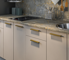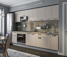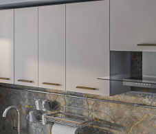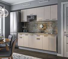 Модульная кухня "Соренто" в цвете Кашемир Серый — это современное сочетание элегантности и функциональности. Мягкий серый оттенок "Кашемир" придаёт кухне утончённый и стильный вид, создавая атмосферу уюта и спокойствия. Фасады мебели выполнены из качественных материалов, что обеспечивает долговечность и лёгкость в уходе.