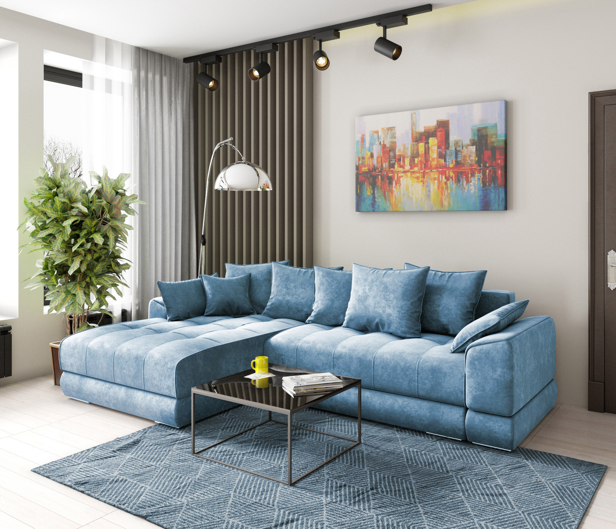 Мягкая мебель синего цвета