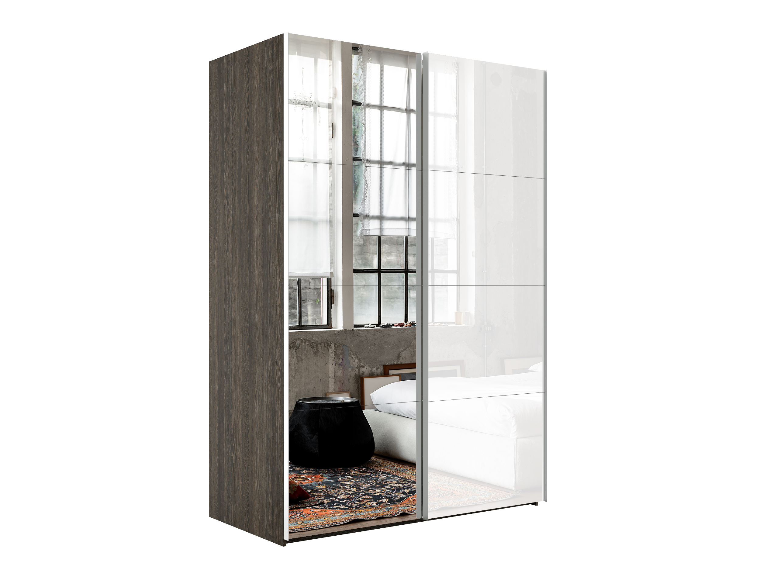 Шкаф Эста дуо Стекло белое/зеркало 2400 х 1600 х 660 (Венге мали)