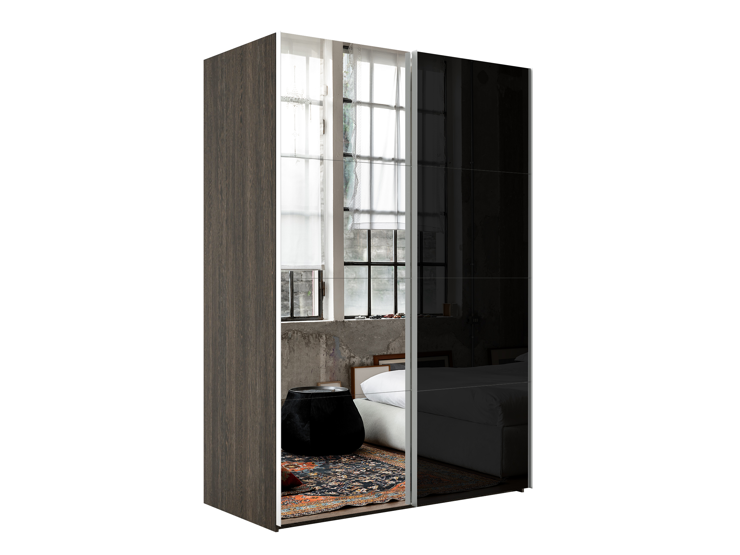 Шкаф Эста дуо Стекло черное/зеркало 2400 х 1600 х 660 (Венге мали)