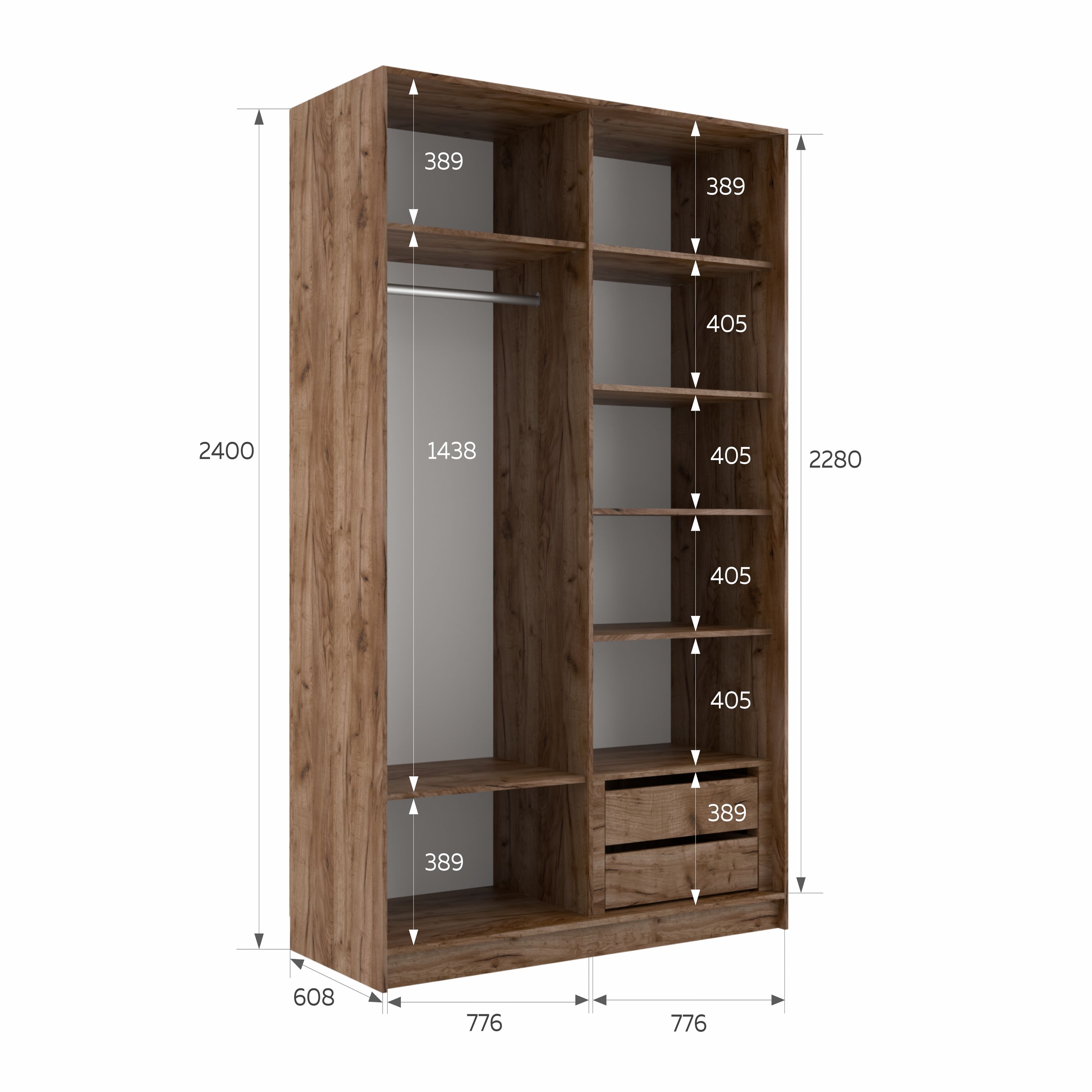 Шкаф-купе Эста ДСП+ДСП 160х66х240 (Дуб/крафт/табак)