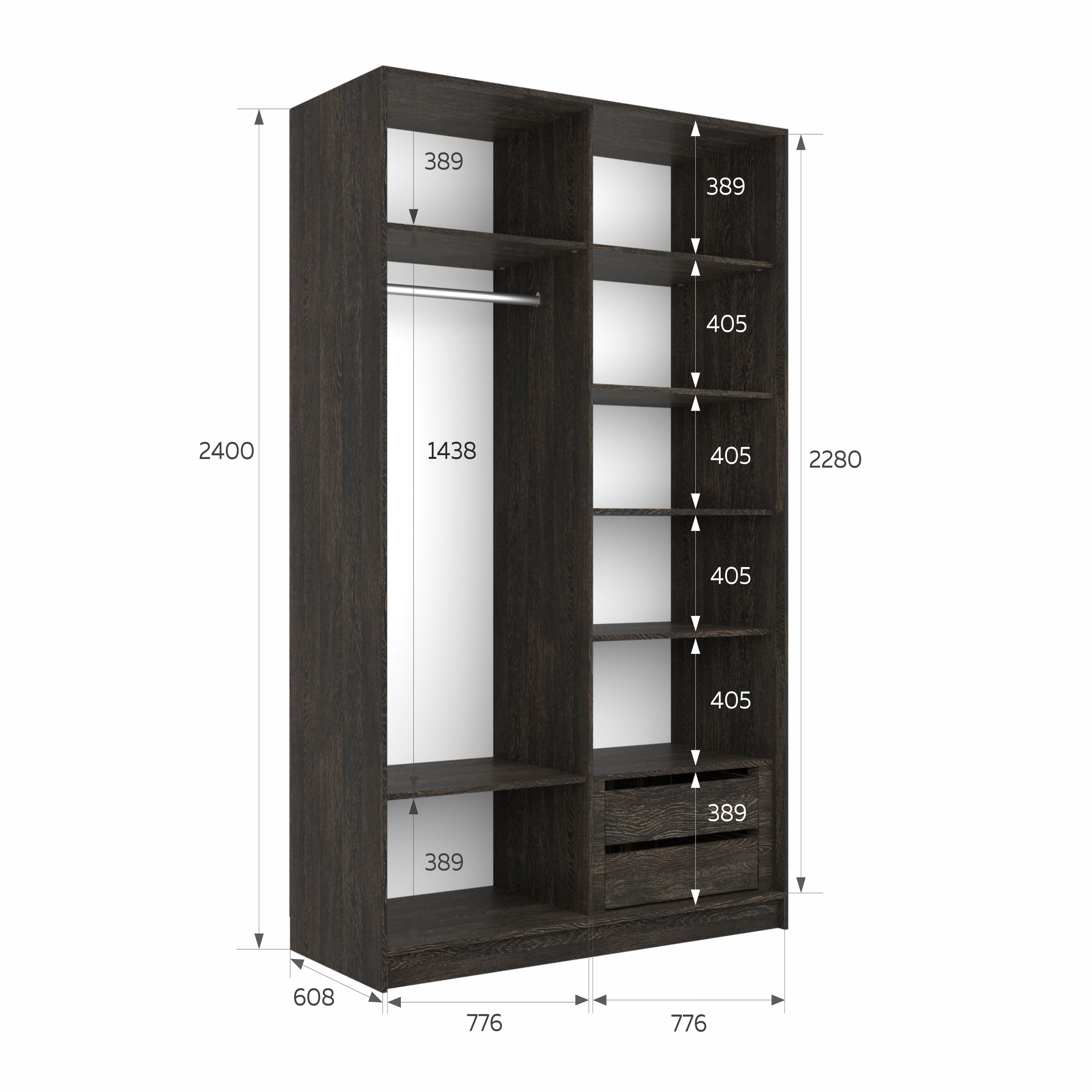 Шкаф-купе Эста ДСП+ДСП 160х66х240 (Венге мали)