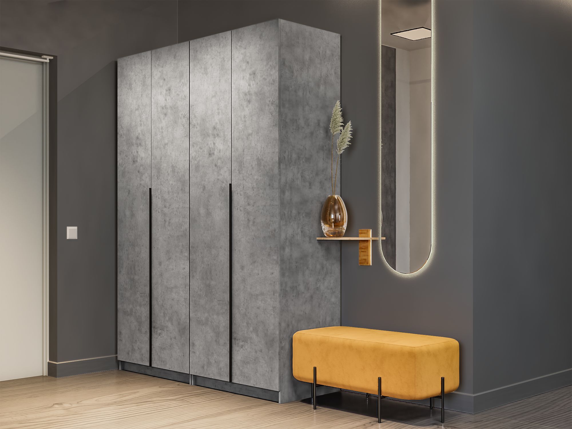 Отзывы о Столплит Распашной шкаф Локер 800+800 (Гармошка) с полками и ящиками слева Бетон