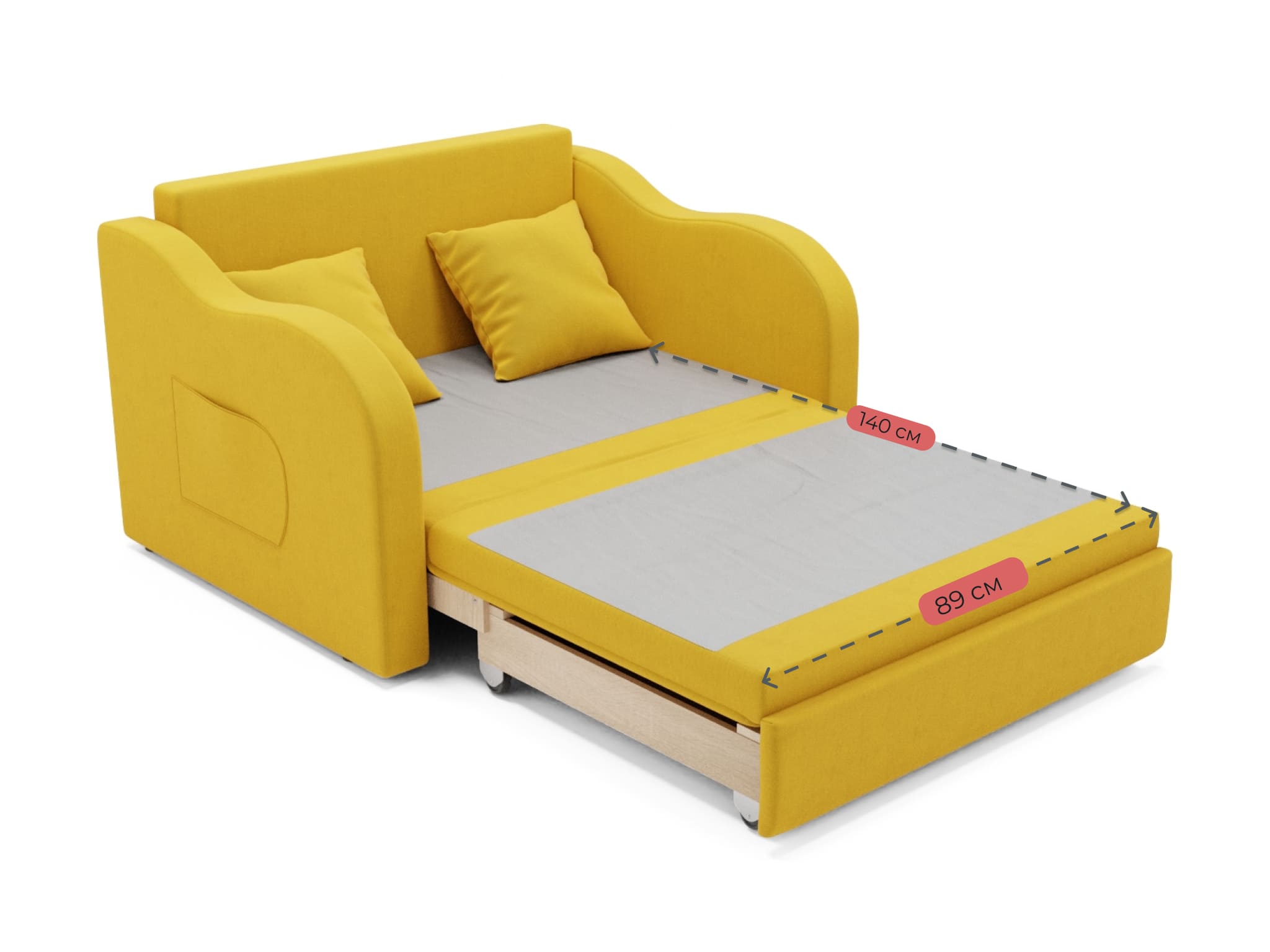 Детский прямой диван Бали,выкатной,велюр (Желтый) Код I0000393436