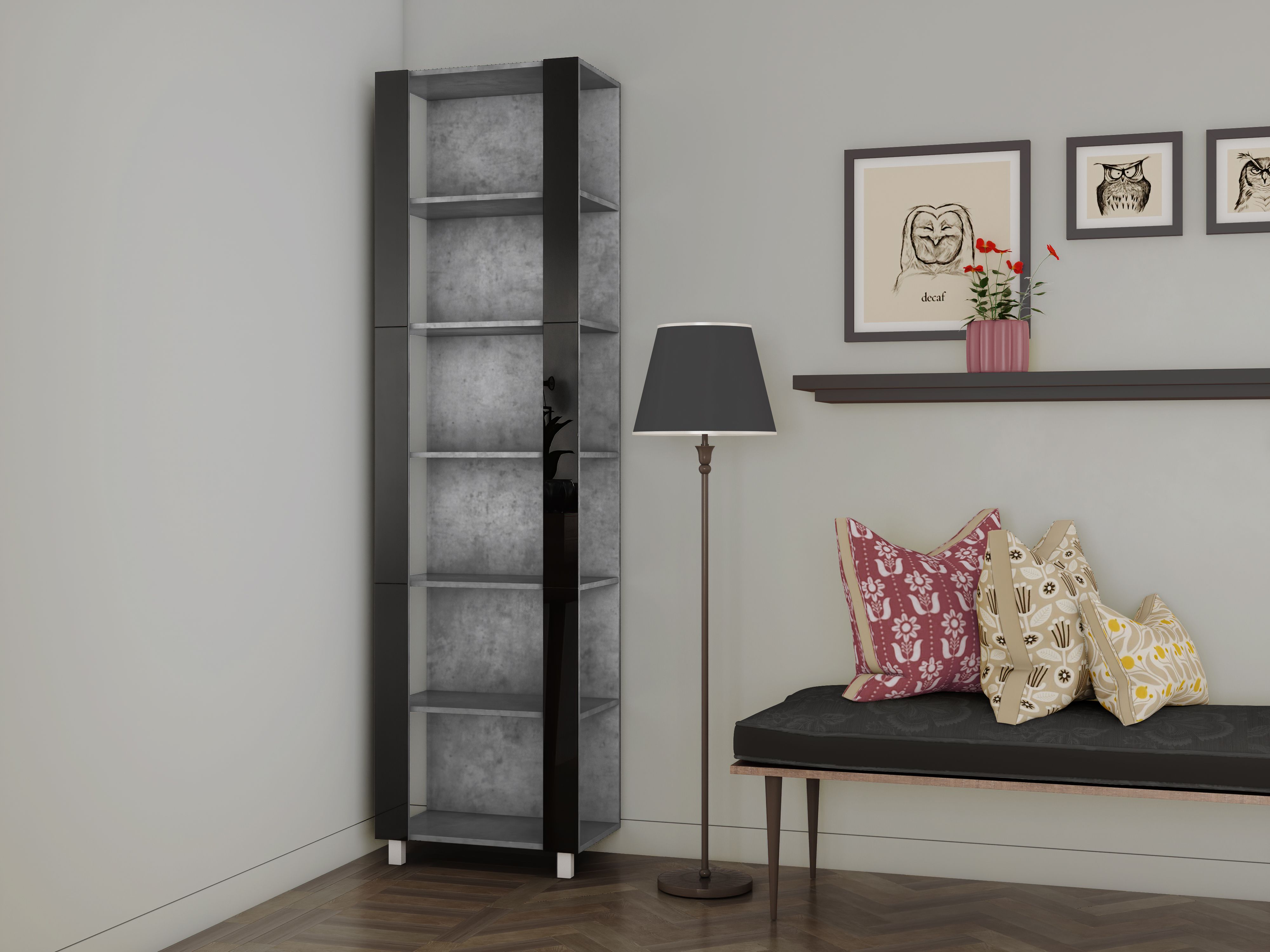 Отзывы о Столплит Стеллаж модульный Универсальный 35х60х220 Черное стекло Бетон