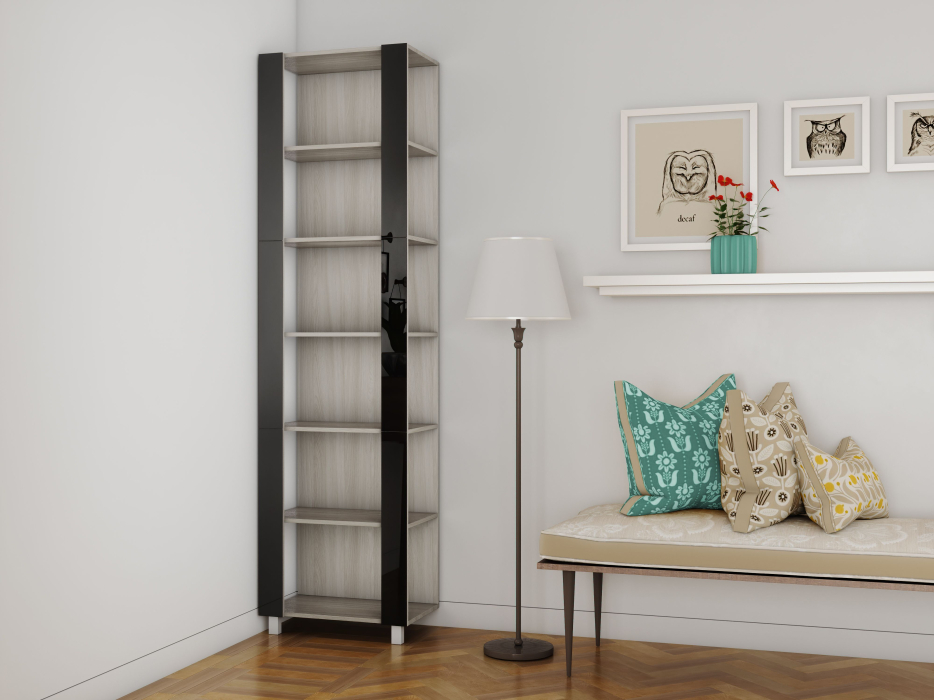 Отзывы о Столплит Стеллаж модульный Универсальный 35х60х220 Черное стекло Ясень шимо светлый