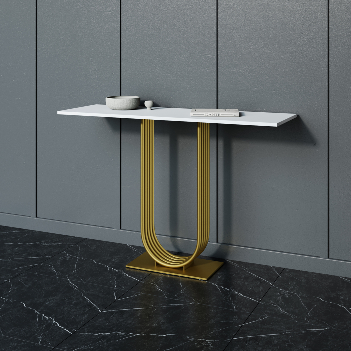 Стол консольный с металлическим подстольем ARFEO (Золотой) 80*35*120 (Белый) Код I0000397665