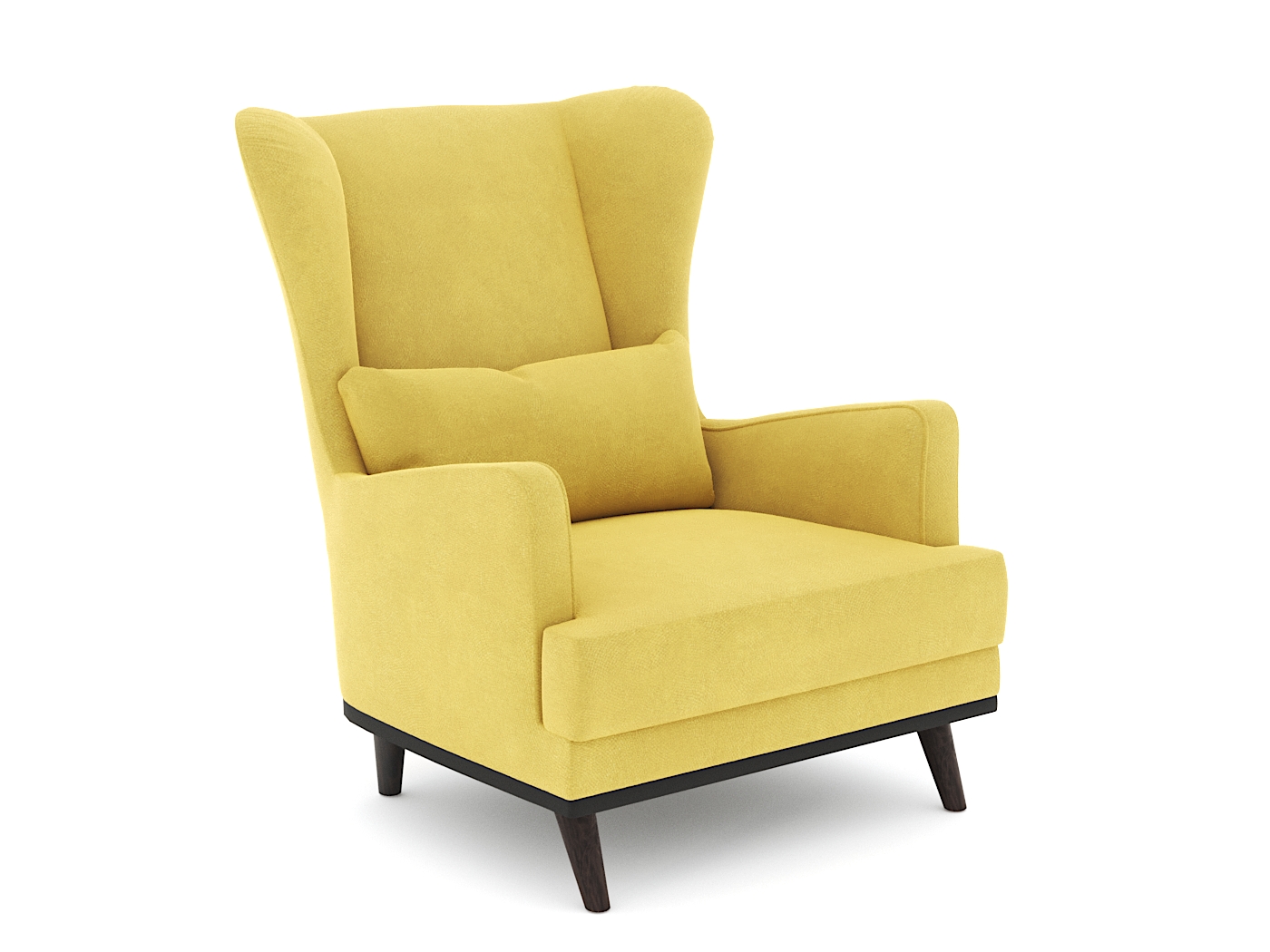 Кресло изготовлено из сухого строганного бруса и фанеры. Наполнитель - Высокоэластичный ППУ. Ножки выполнены из массива дерева цвета Венге. Небольшая подушка идет в комплекте к креслу.