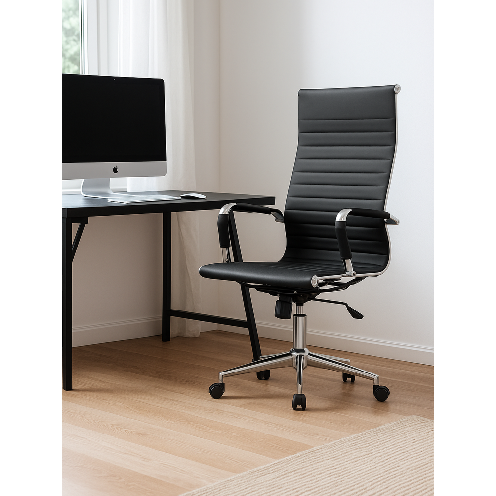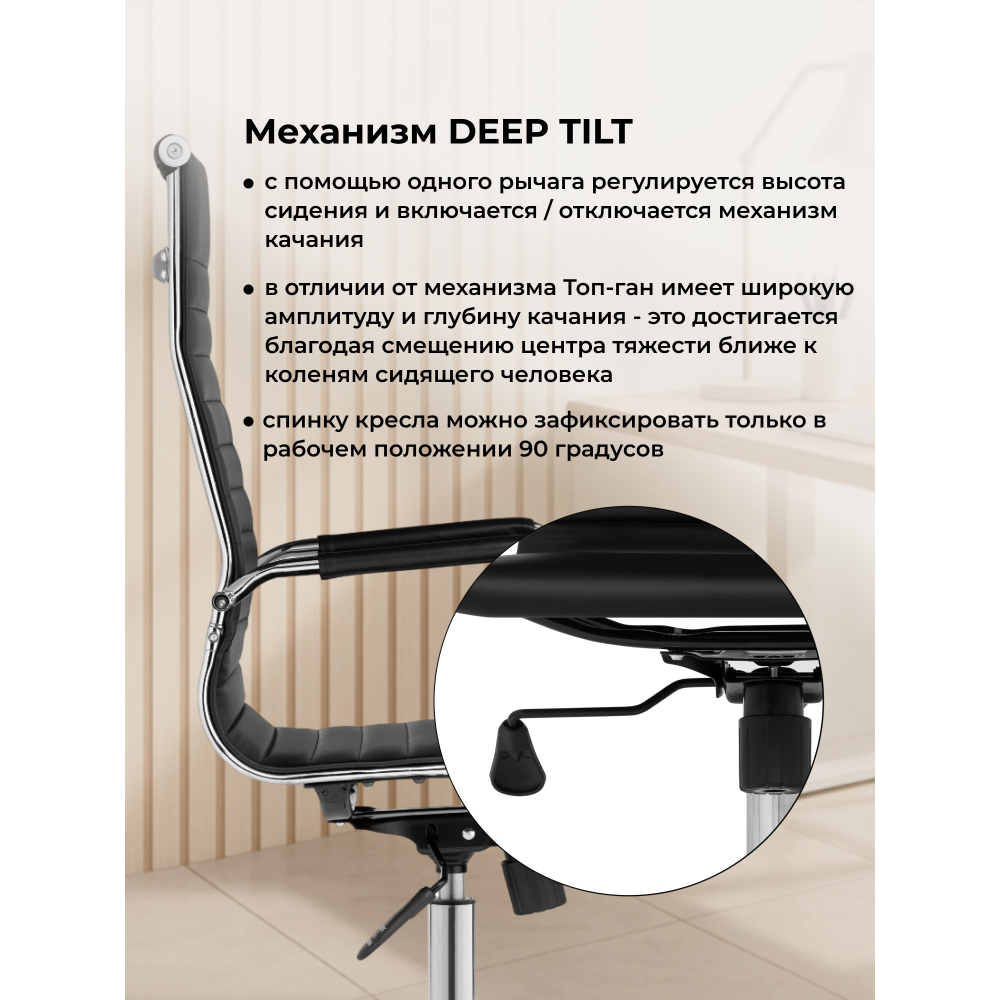 Компьютерное кресло Reus - материал обивки экокожа. Тип механизма: топ-ган. Материал каркаса хромированный металл. Высота подлокотников: 69 - 76 см. Дышащая экокожа, устойчивость к влаге и пятнам