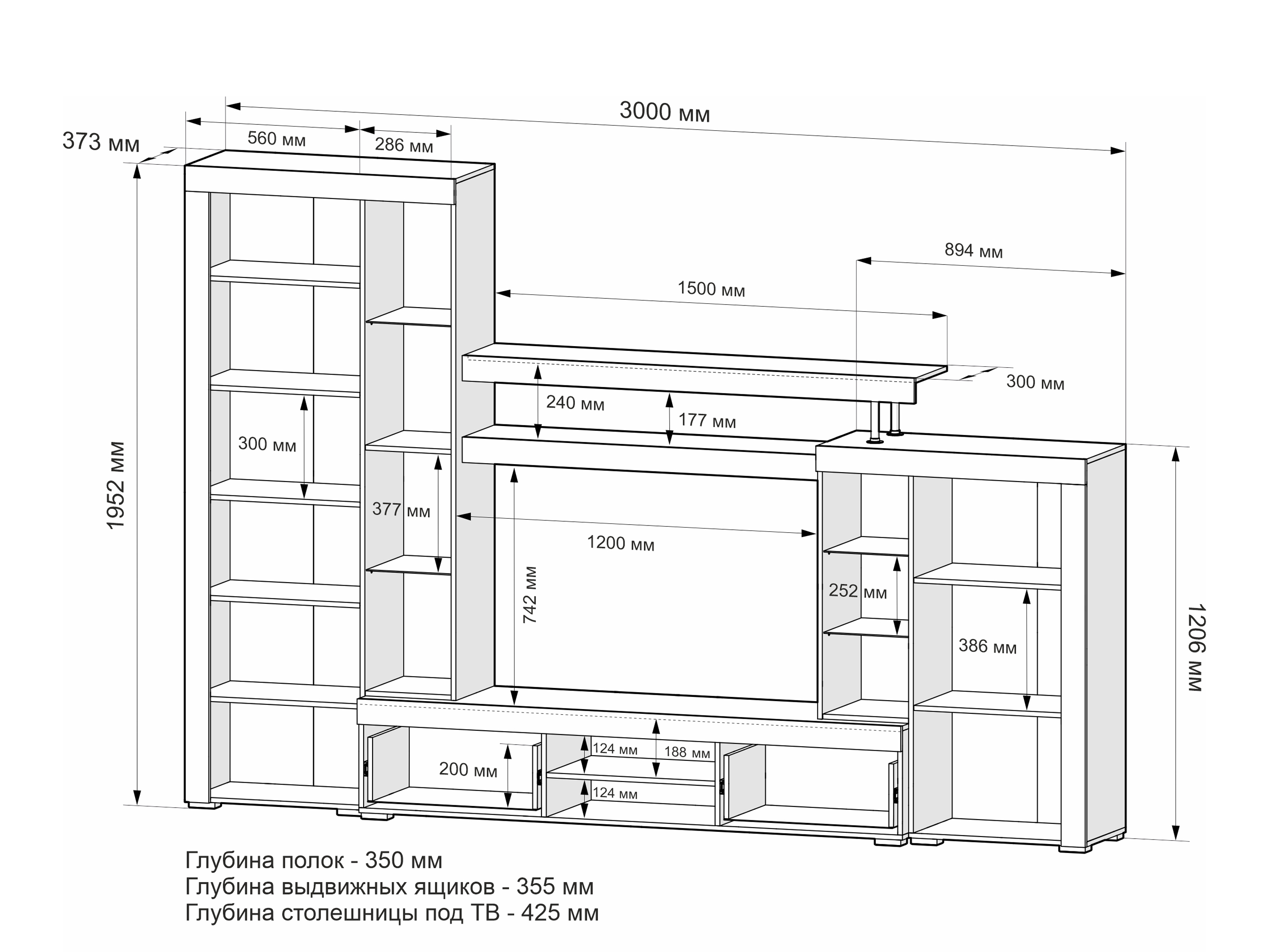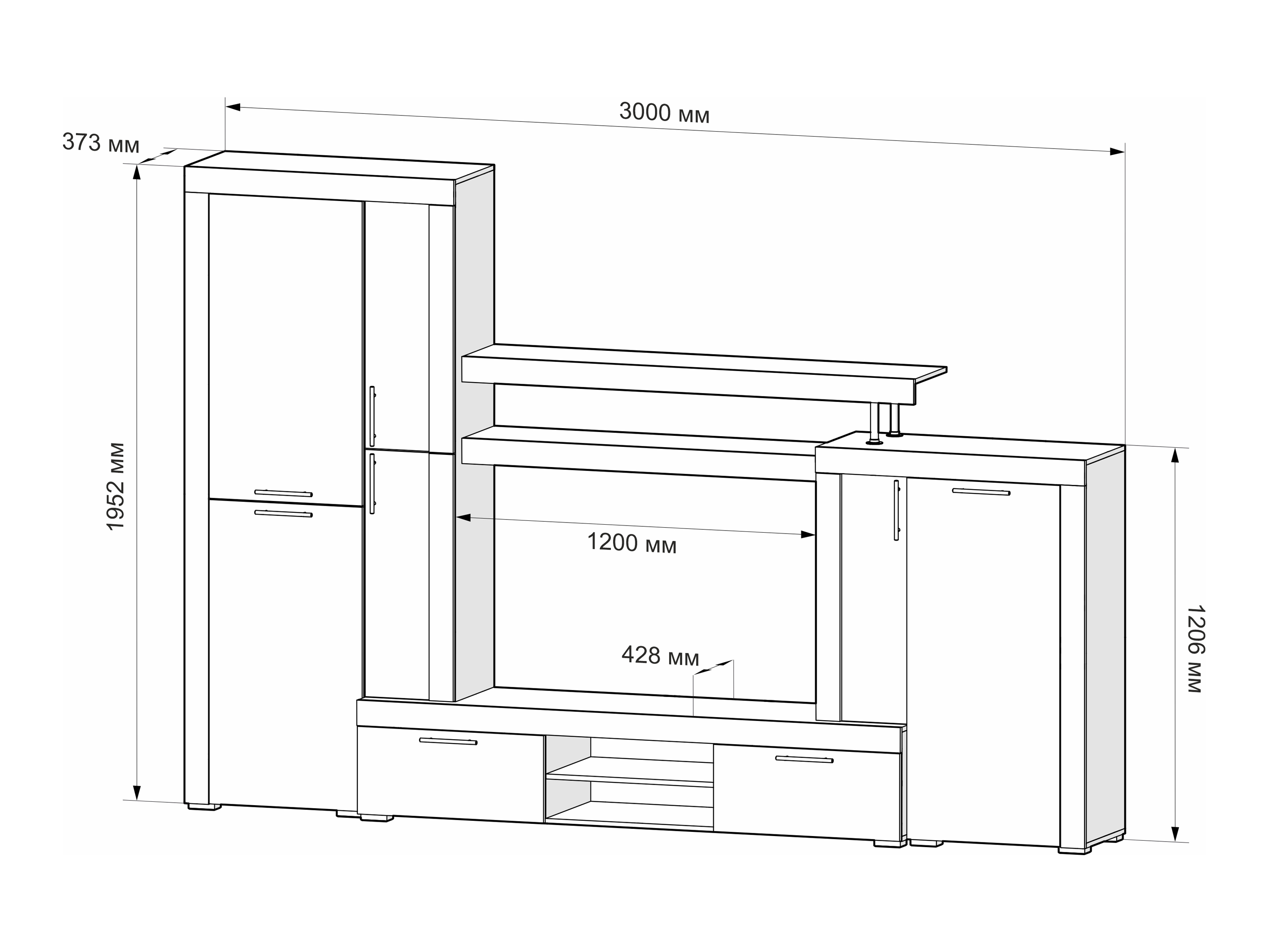 Ш/В/Г: 3000 мм × 1952 мм × 428 мм
