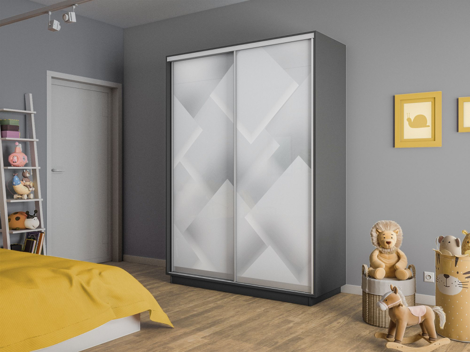 Шкаф-купе Экспресс 2-х дверный Фотопечать Квадрат Стекла 140х60х240 (Диамант серый)