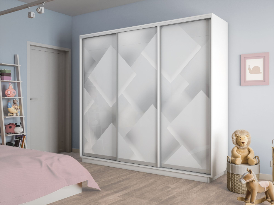Шкаф-купе Экспресс 3-х дверный Фотопечать Квадрат Стекла 210х60х220 (Белый снег)