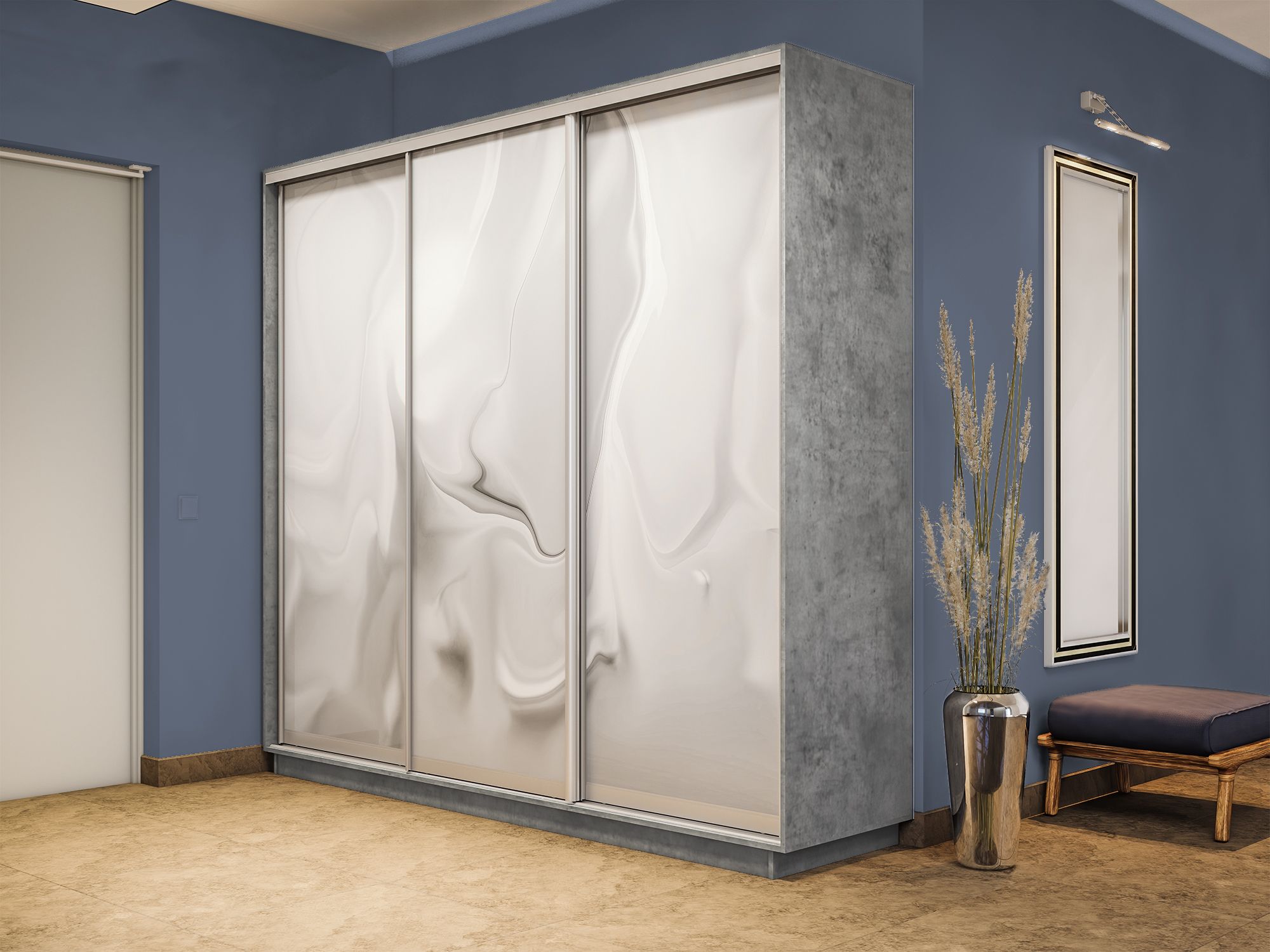 Шкаф-купе Экспресс 3-х дверный Фотопечать Шелк Стекла 210х60х220 (Бетон)