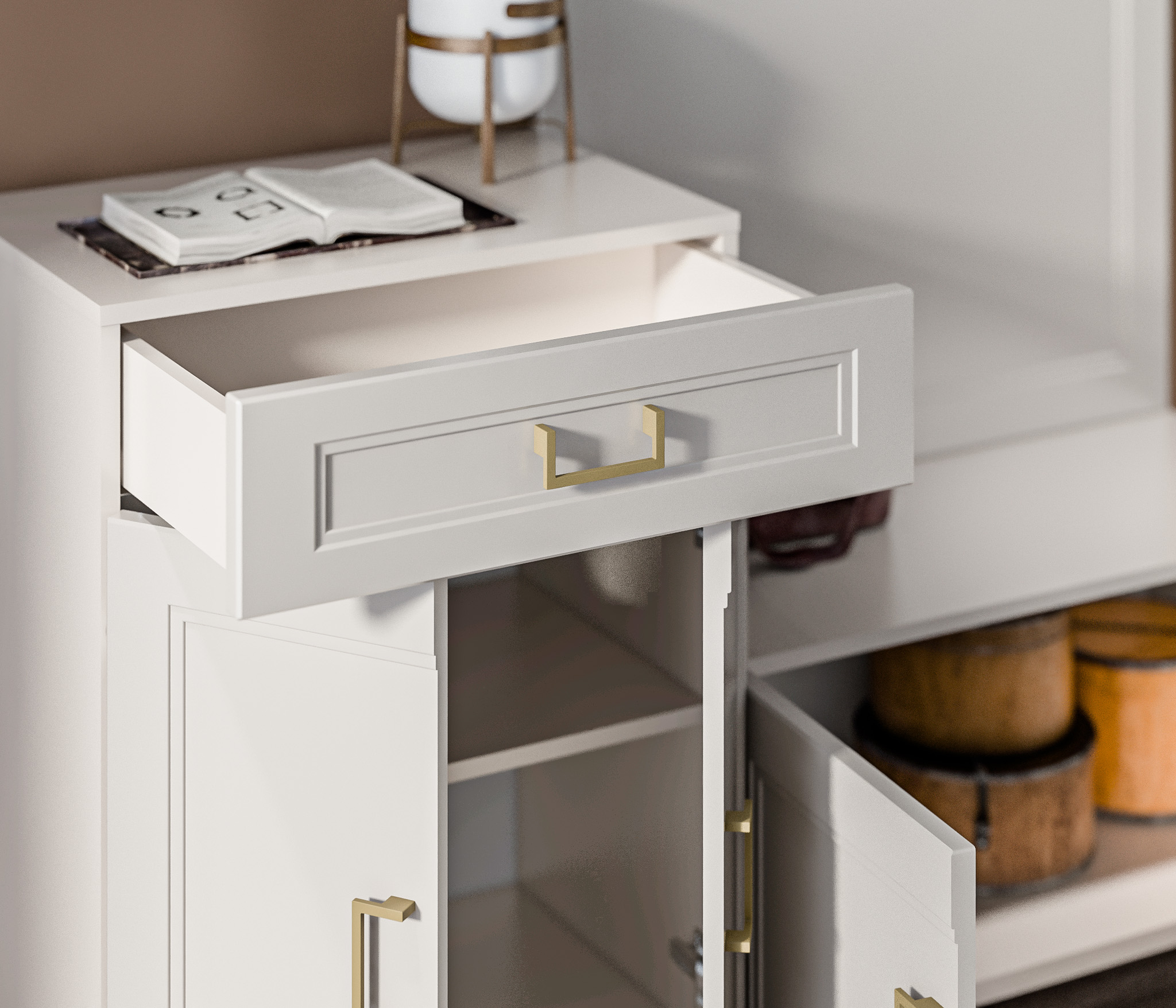 Мебель коллекции ассоль "Ассоль" имеет петли и направляющие с доводчиком, что придает легкость и плавность движения при открывании и закрывании, а также повышает уровень комфорта использования.
