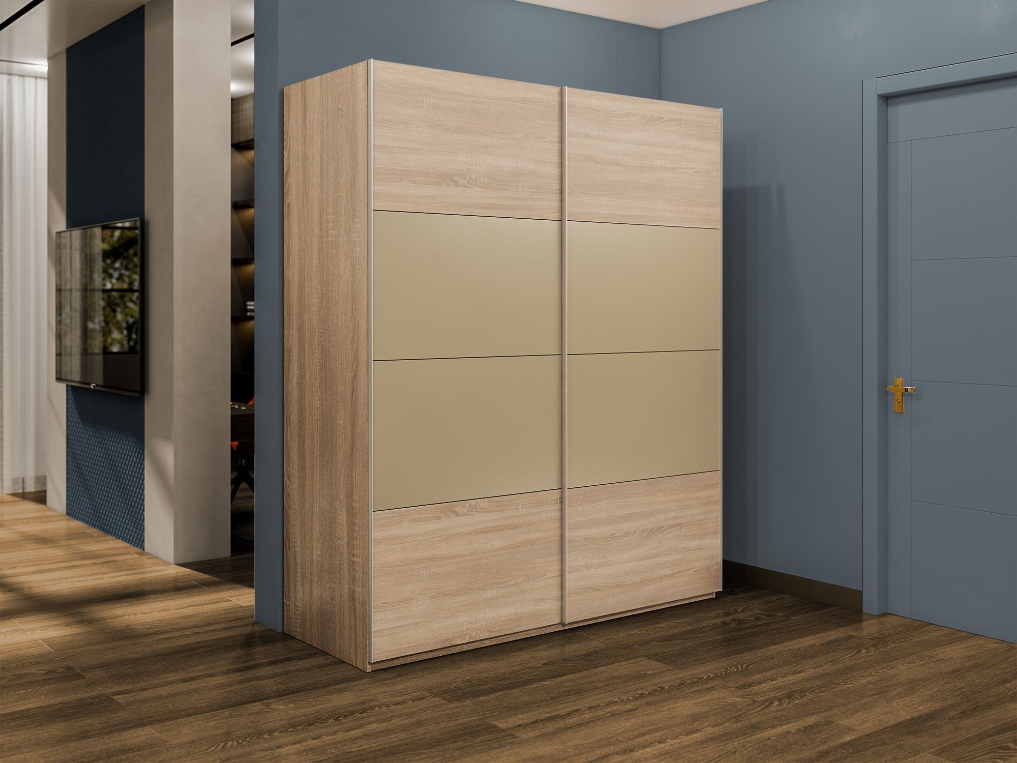 Шкаф-купе Эста 2-х дверный ДСП/Стекла фисташка/Доводчик 160х66х240 (Дуб Бардолино)