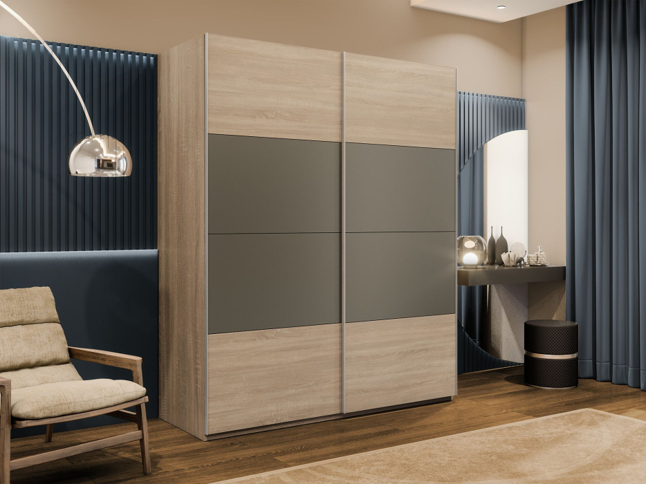 Шкаф-купе Эста 2-х дверный ДСП/Стекла хаки/Доводчик 180х66х240 (Дуб Бардолино)