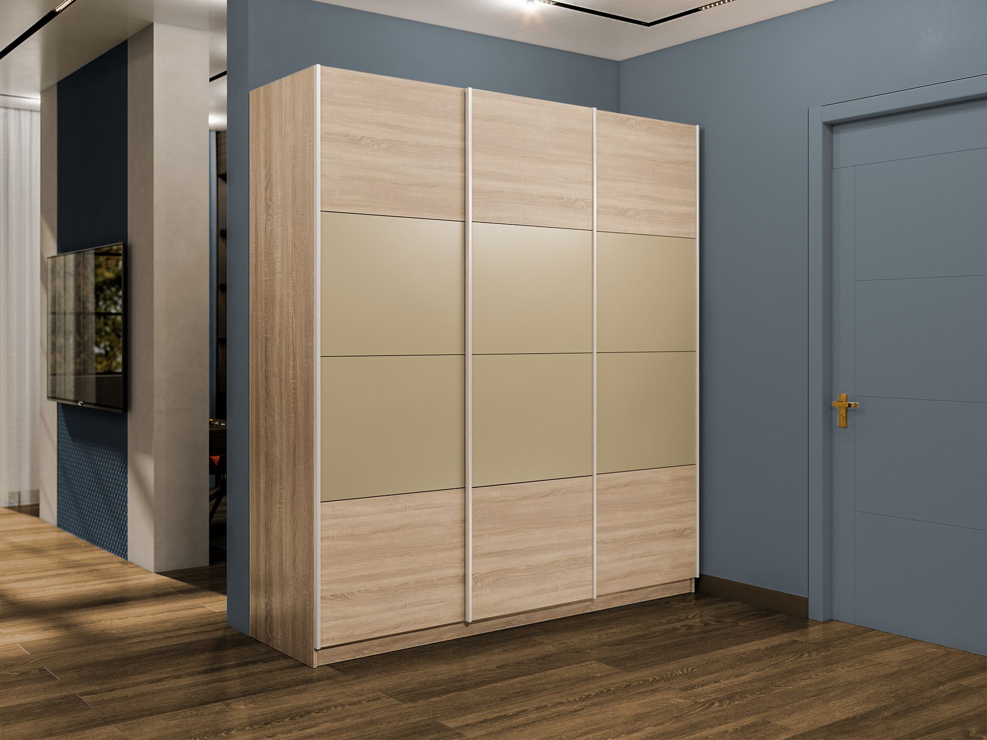 Шкаф-купе Эста 3-х дверный ДСП/Стекла фисташка/Доводчик 240х66х240 (Дуб Бардолино)