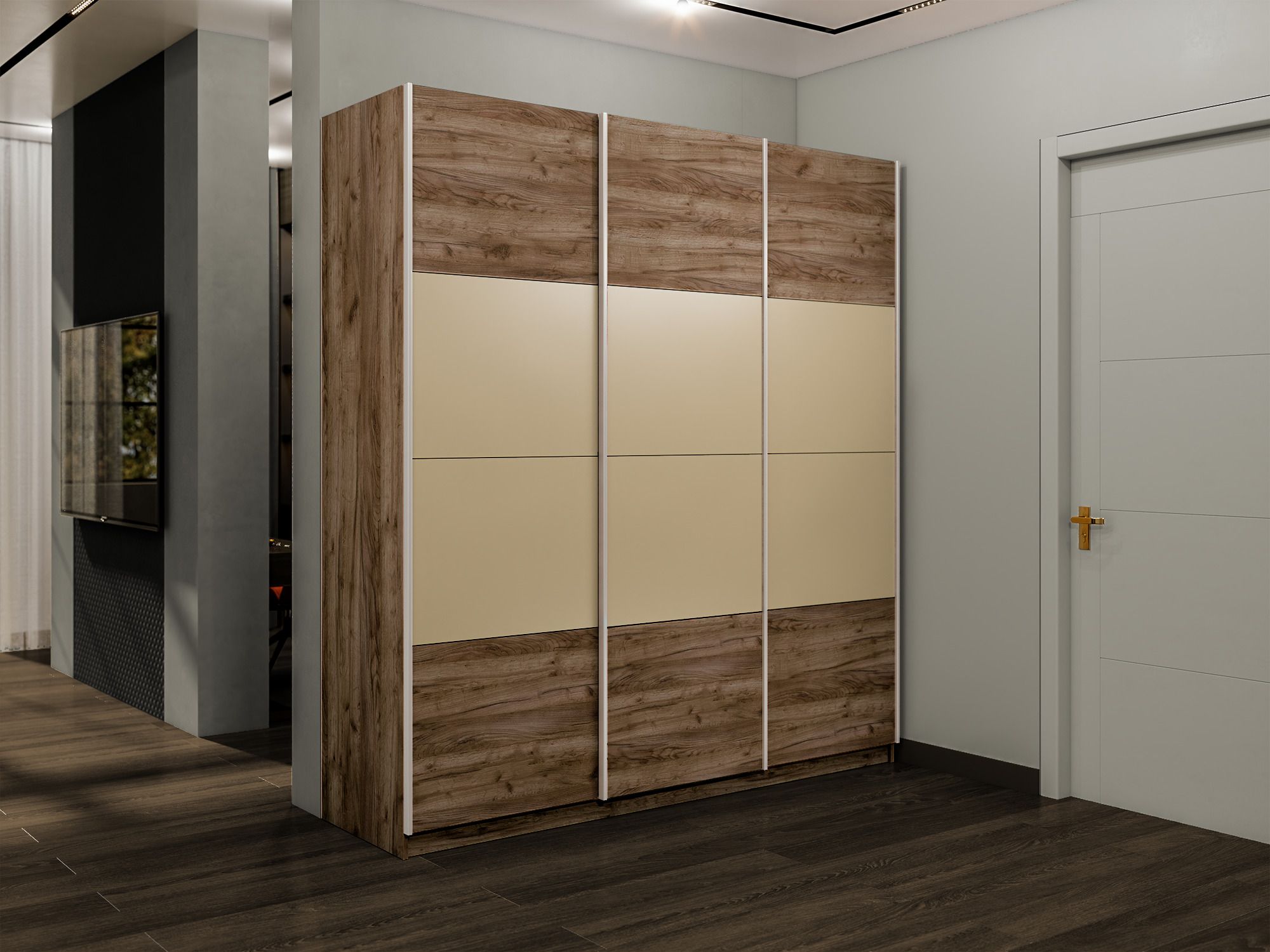 Шкаф-купе Эста 3-х дверный ДСП/Стекла фисташка/Доводчик 240х66х240 (Дуб/крафт/табак)
