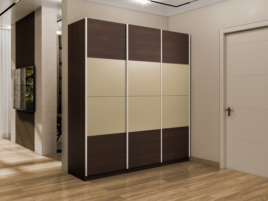 Шкаф-купе Эста 3-х дверный ДСП/Стекла фисташка/Доводчик 300х66х240 (Венге мали)