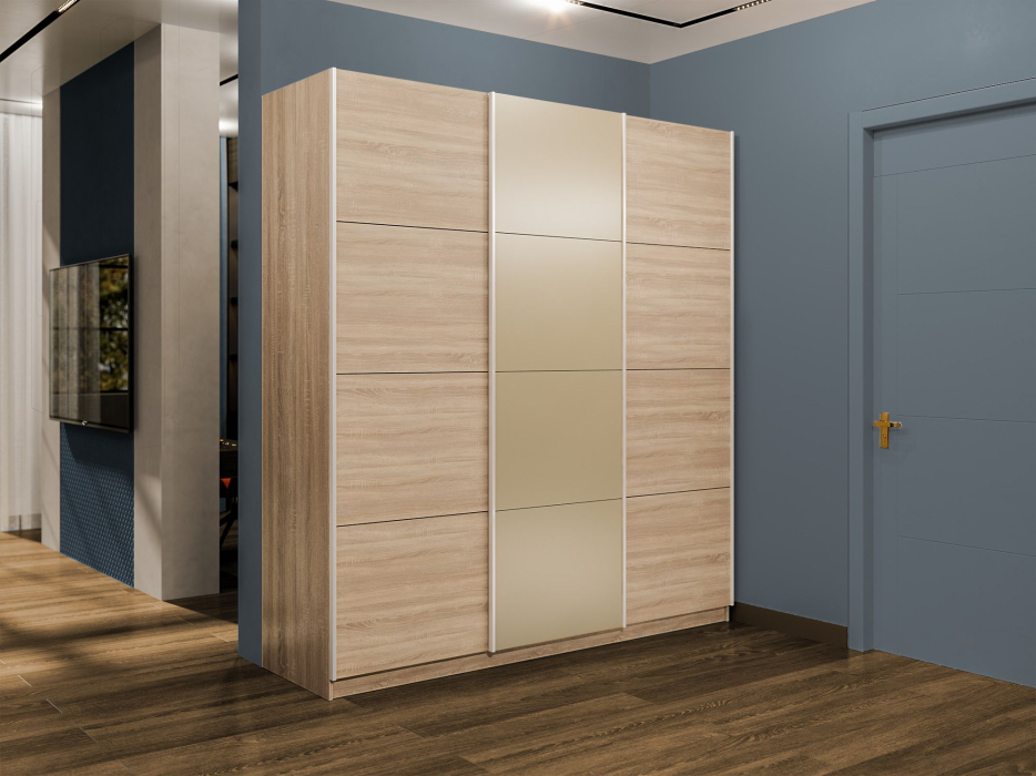 Отзывы о Столплит Шкаф-купе Эста 3-х дверный ДСП/Стекла фисташка/Доводчик 270х66х240 Дуб Бардолино