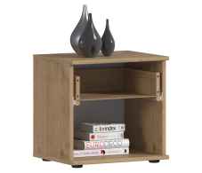 Габаритные размеры - ширина 45 см, высота 44 см, глубина 35 см. Под ящиком расположена открытая полка. Модель выполнена из КДСП. Благодаря корпусу с текстурой под дерево и белым фасадом тумба может с успехом использоваться и в классических, и в суперсовременных интерьерах.