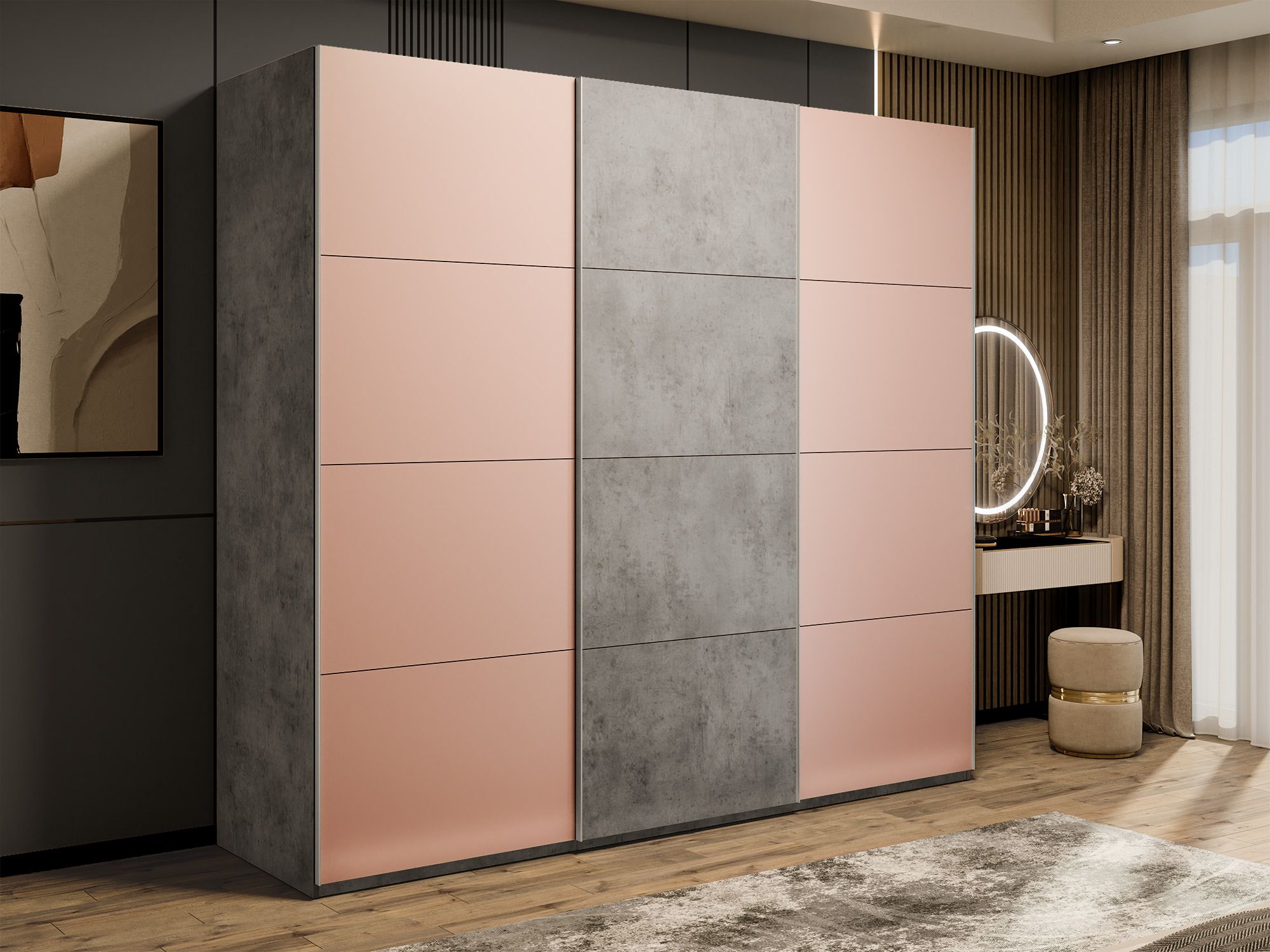 Шкаф-купе Эста 3-х дверный ДСП/Стекла пудра/Доводчик 270х66х240 (Бетон)