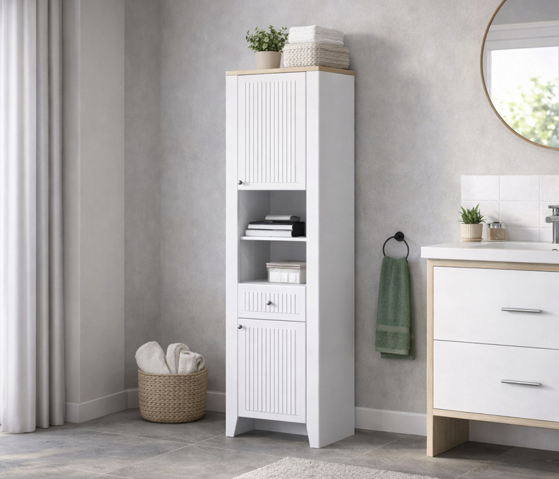 Отзывы о Столплит Шкаф-пенал Монтана СБ-3554 Белый Альпийский,Дуб Гамильтон/МДФ Дуб Белый