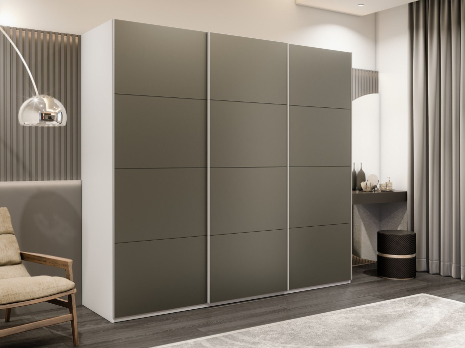 Шкаф-купе Эста 3-х дверный Стекла хаки/Доводчик 270х66х240 (Белый)