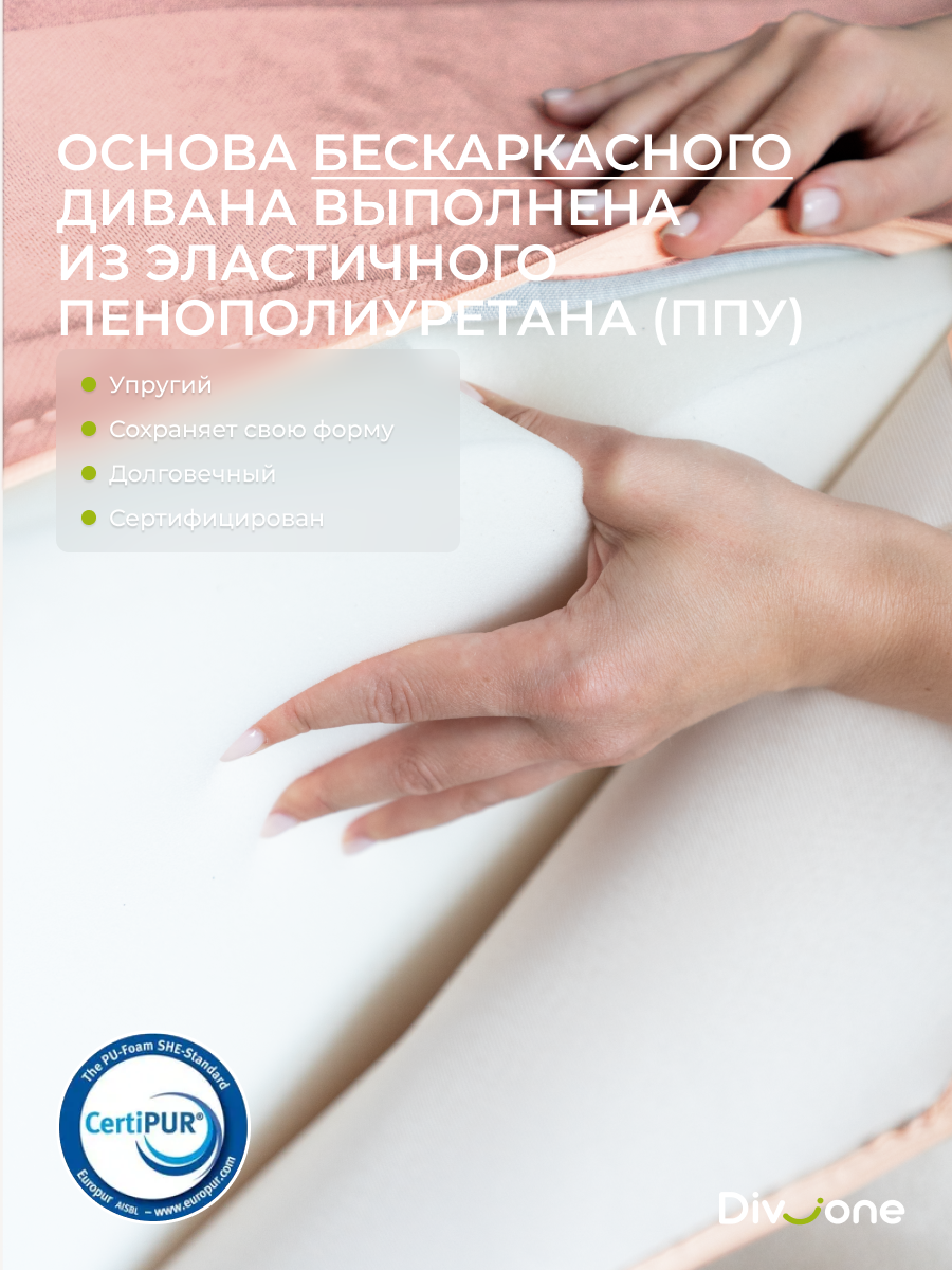 Мы не доставляем наш товар в вакуумной упаковке. Вес всего 30 кг. Это позволит Вам без усилий поднимать и передвигать маленький бескаркасный трансформер при уборке. Легкость даст возможность перемещать малогабаритный диван-кровать в разные помещения например спальню или на кухню. Благодаря отсутствию твердых элементов в конструкции софа безопасна для ребенка и идеально впишется в детскую комнату.