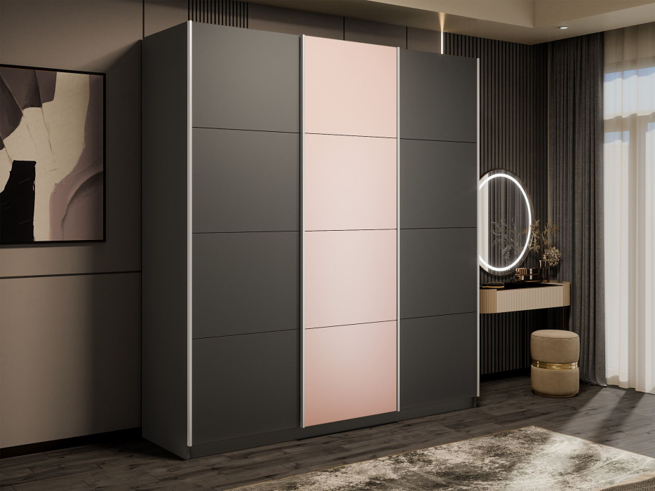 Шкаф-купе Прайм 3-х дверный Стекла пудра/ДСП/Доводчики 210х57х230 (Диамант серый)