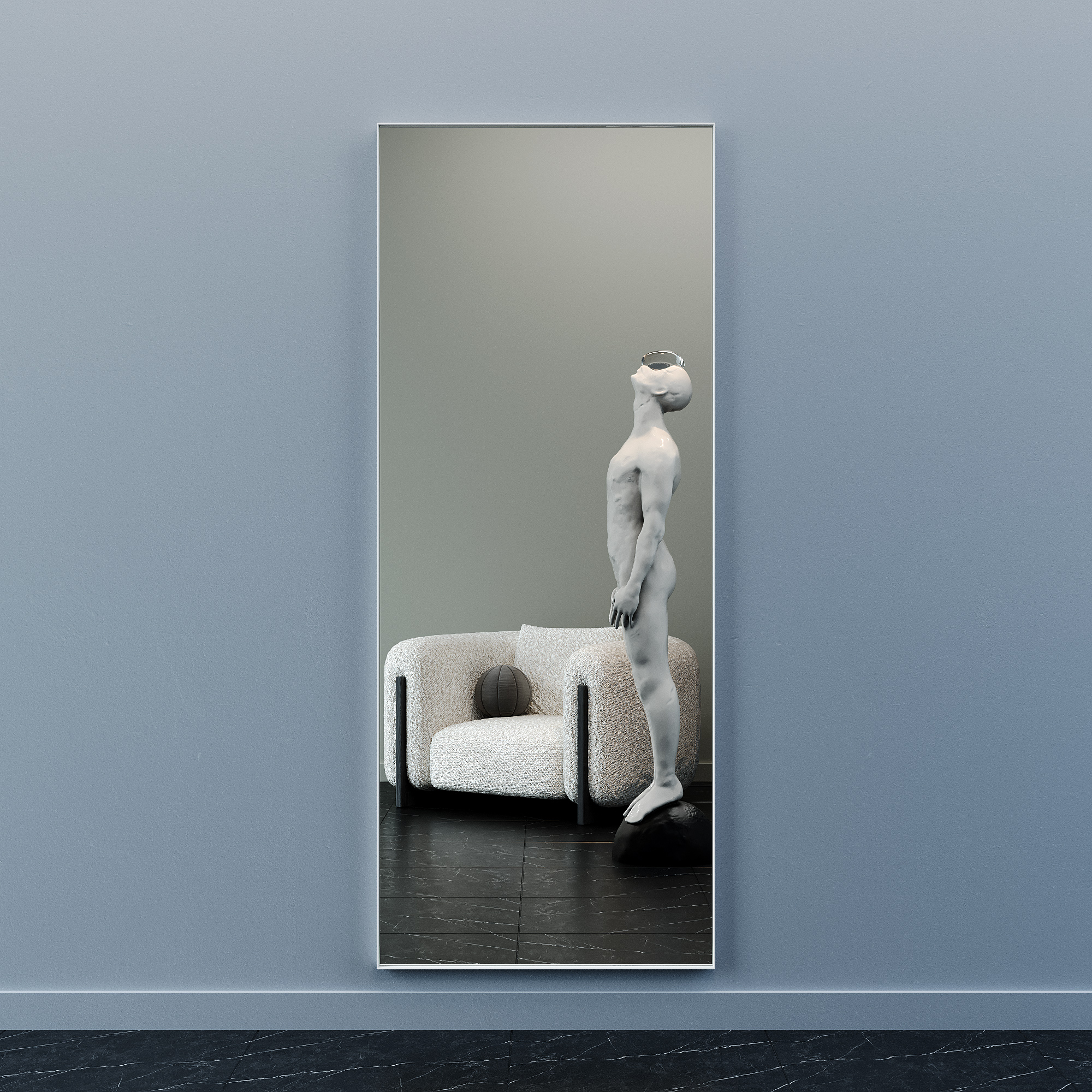 Напольно-настенное зеркало в раме GENGLASS HALFEO SLIM XL (Белый)
