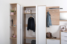 Конструкция с гардеробной полочкой и 5 металлическими крючками для одежды.