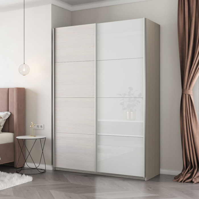 Шкаф-купе Прайм 2-х дверный ДСП/Стекло белое/Доводчики 160х57х230 Код I0000401488