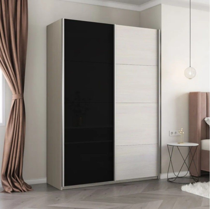 Шкаф-купе Прайм 2-х дверный ДСП/Стекло черное/Доводчики 160х57х230 Код I0000401491