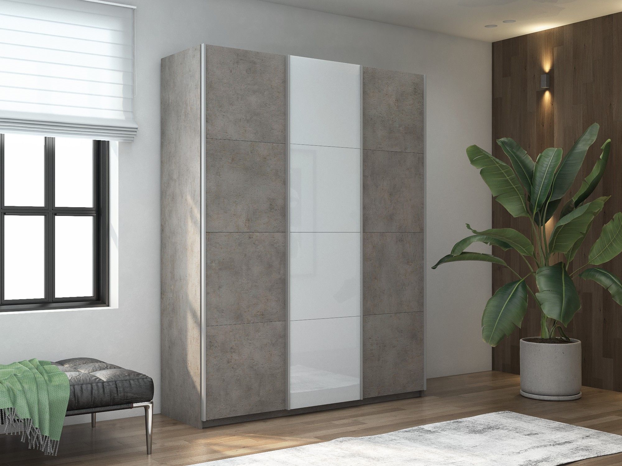 Шкаф-купе Прайм 3-х дверный ДСП/Стекло белое/Доводчики 180х57х230 (бетон)