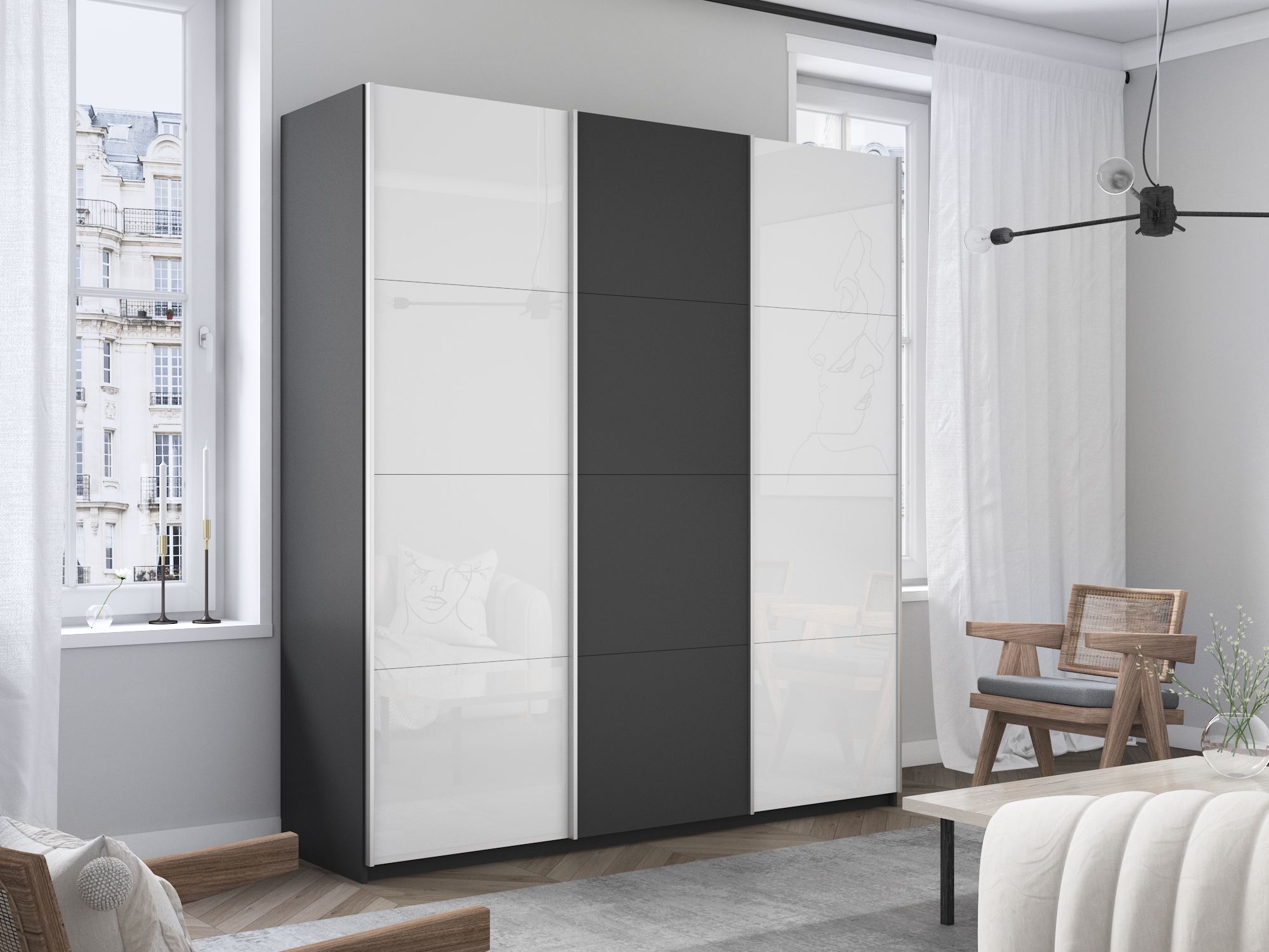 Отзывы о Столплит Шкаф-купе Прайм 3-х дверный Стекла белые/ДСП/Доводчики 210х57х230 Серый диамант