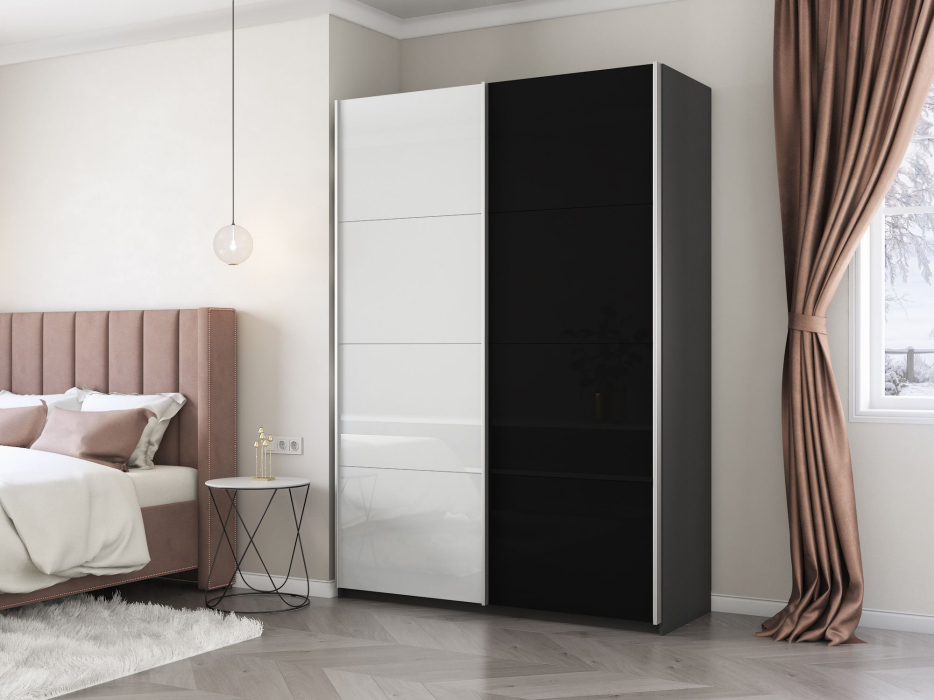 Шкаф-купе Прайм 2-х дверный Стекло белое/Стекло черное/Доводчики 160х57х230 (Серый диамант)