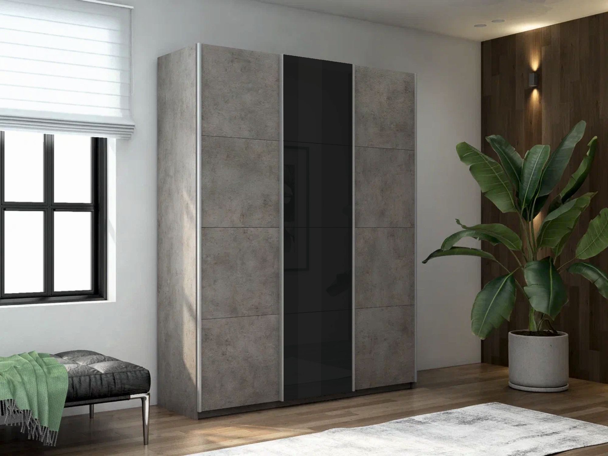 Шкаф-купе Прайм 3-х дверный ДСП/Стекло черное/Доводчики 210х57х230 (бетон)