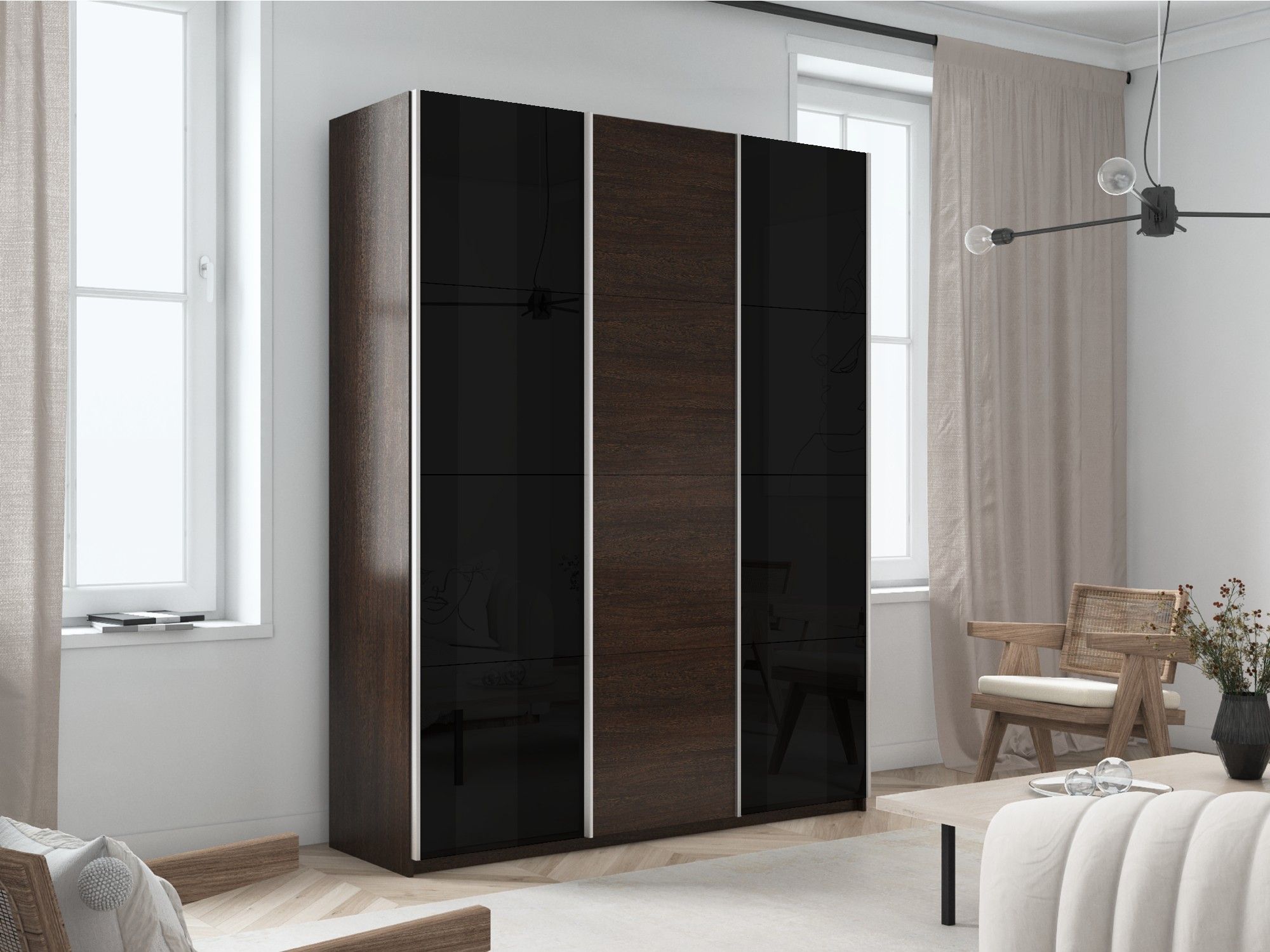 Шкаф-купе Прайм 3-х дверный Стекла черные/ДСП/Доводчики 210х57х230 (Венге)