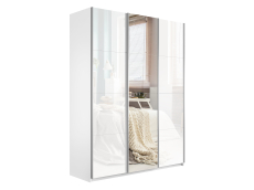 Шкаф-купе Прайм 3-х дверный Стекла белые/Зеркало/Доводчики 210х57х230 Код I0000427477