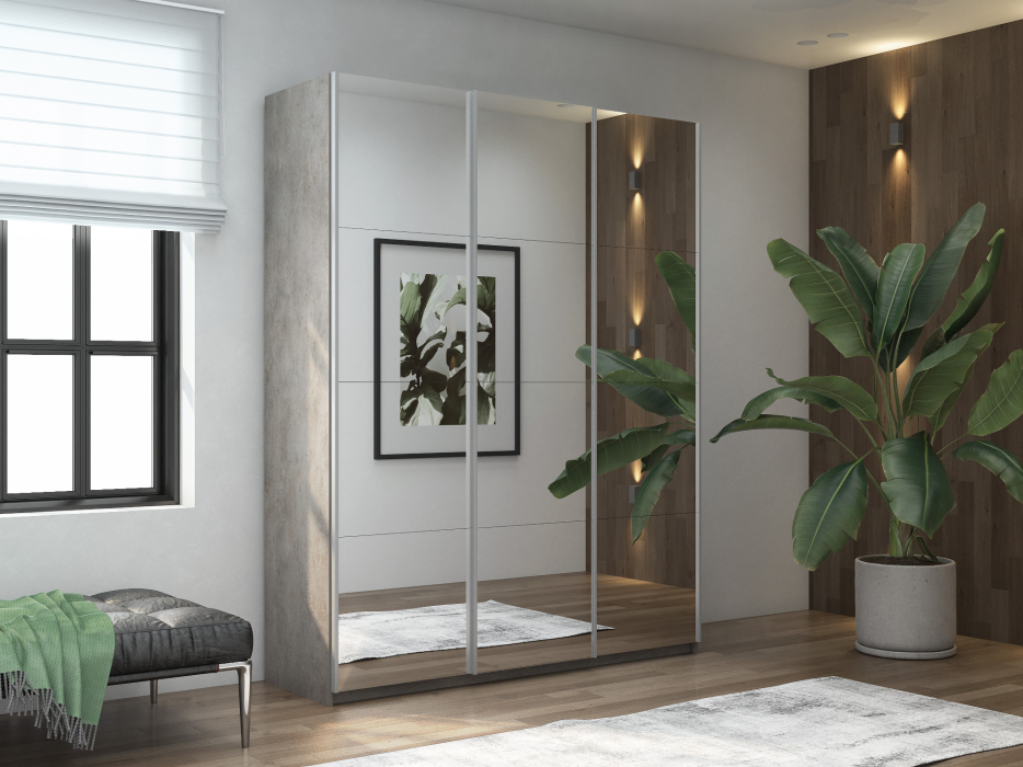 Шкаф-купе Широкий Прайм 3-х дверный Зеркала/Доводчики 240х57х230 (бетон)