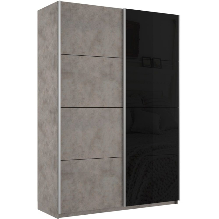 Шкаф-купе Прайм 2х дверный ДСП/Стекло черное 140х57х230 (Бетон)