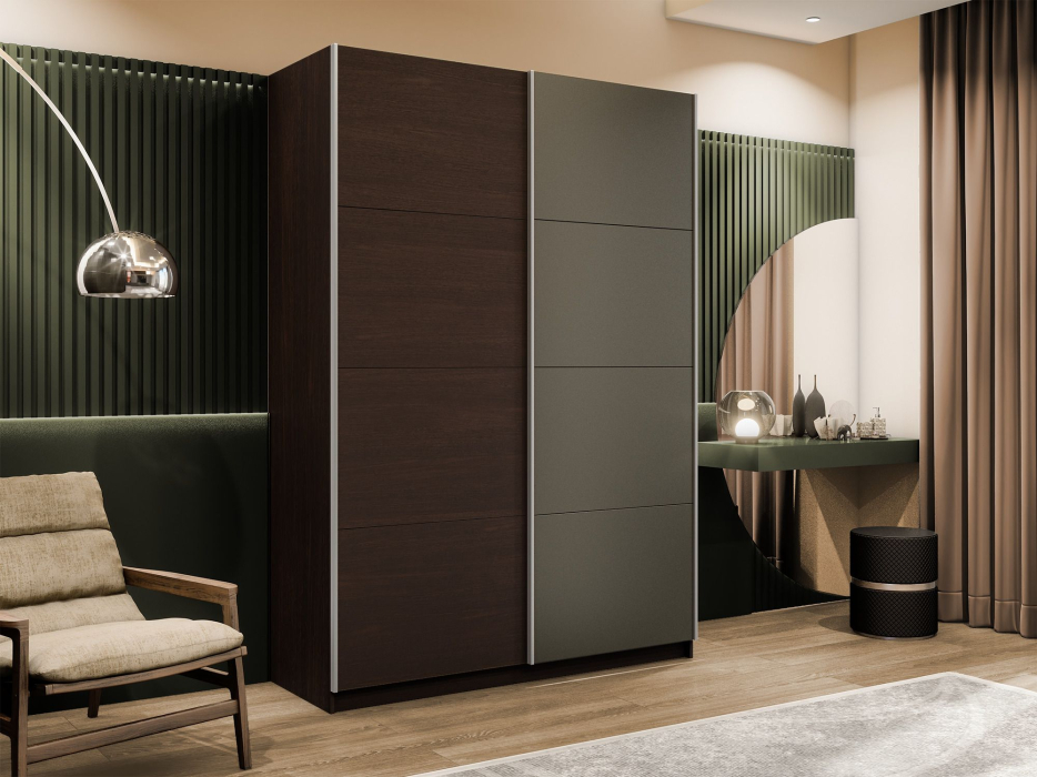 Шкаф-купе Прайм 2-х дверный ДСП/Стекло хаки/Доводчики 140х57х230 (Венге)
