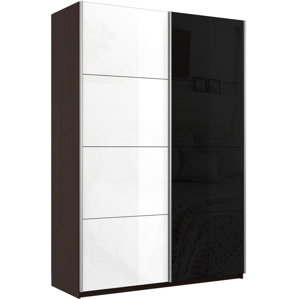 Шкаф-купе Прайм 2х дверный Белый Глянец/Стекло черное 140х57х230 (Венге)