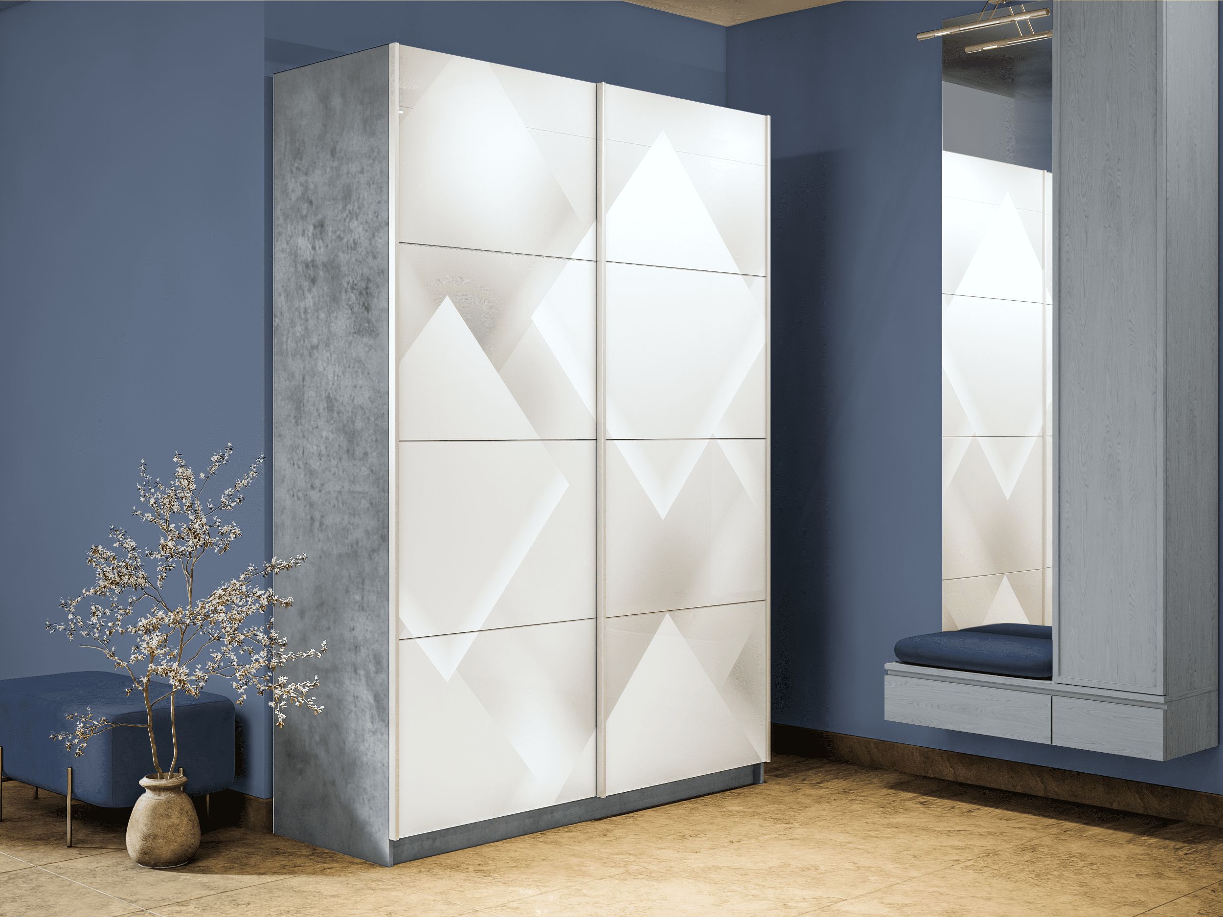 Шкаф-купе Прайм 2-х дверный Фотопечать Квадраты Стекла/Доводчики 120х57х230 (Бетон)