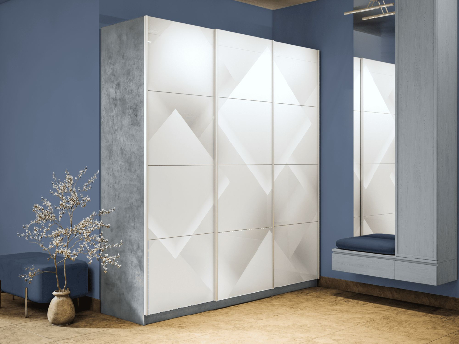 Шкаф-купе Прайм 3-х дверный Фотопечать Квадраты Стекла/Доводчики 180х57х230 (Бетон)