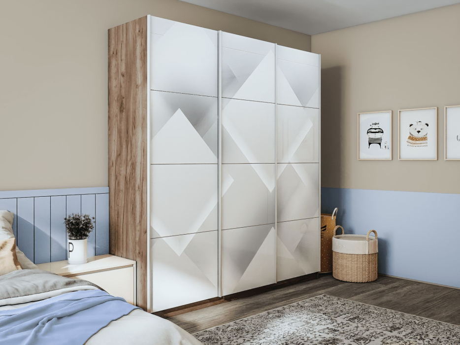 Шкаф-купе Прайм 3-х дверный Фотопечать Квадраты Стекла/Доводчики 180х57х230 (Дуб/крафт/табак)