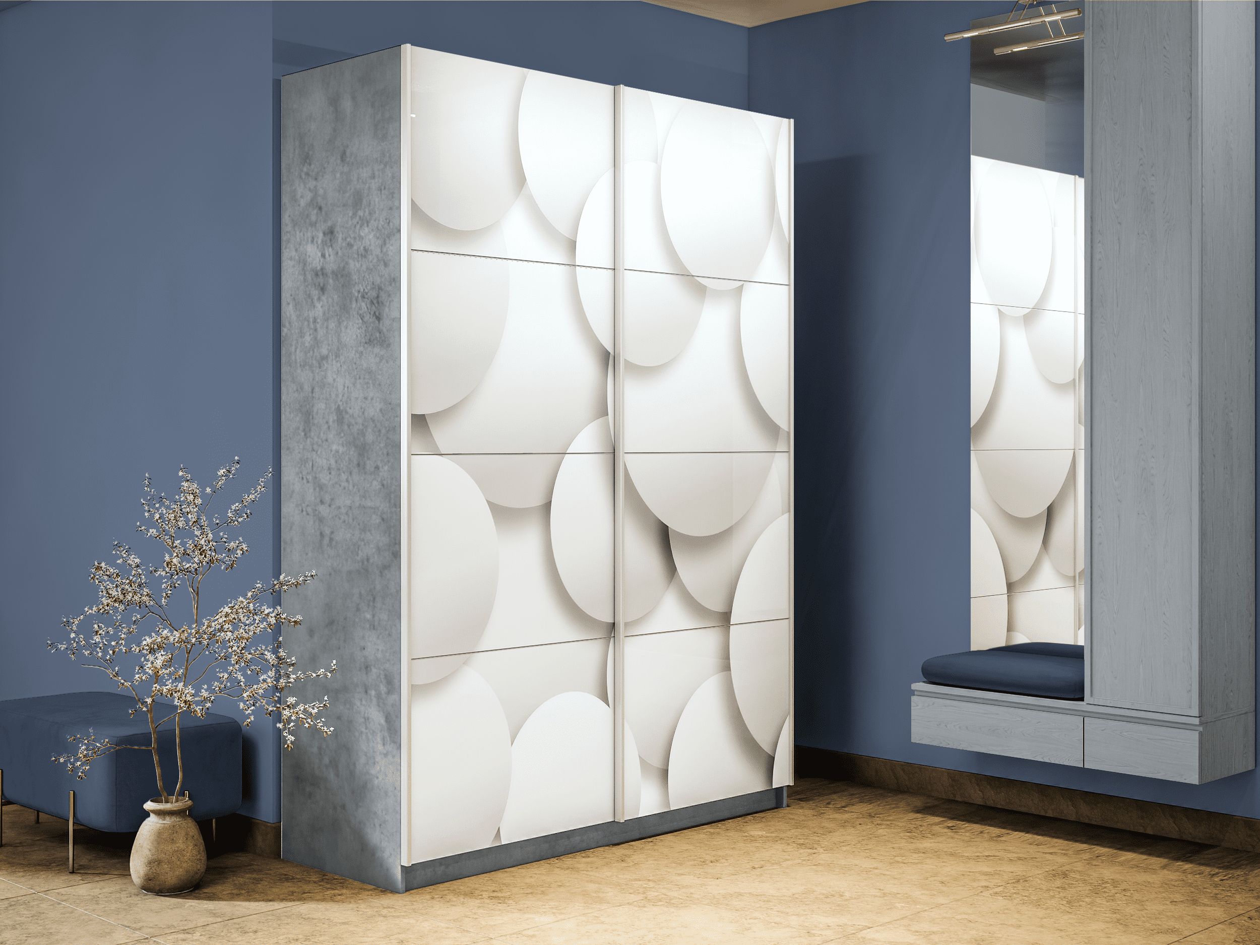 Шкаф-купе Прайм 2-х дверный Фотопечать Шары Стекла/Доводчики 140х57х230 (Бетон)