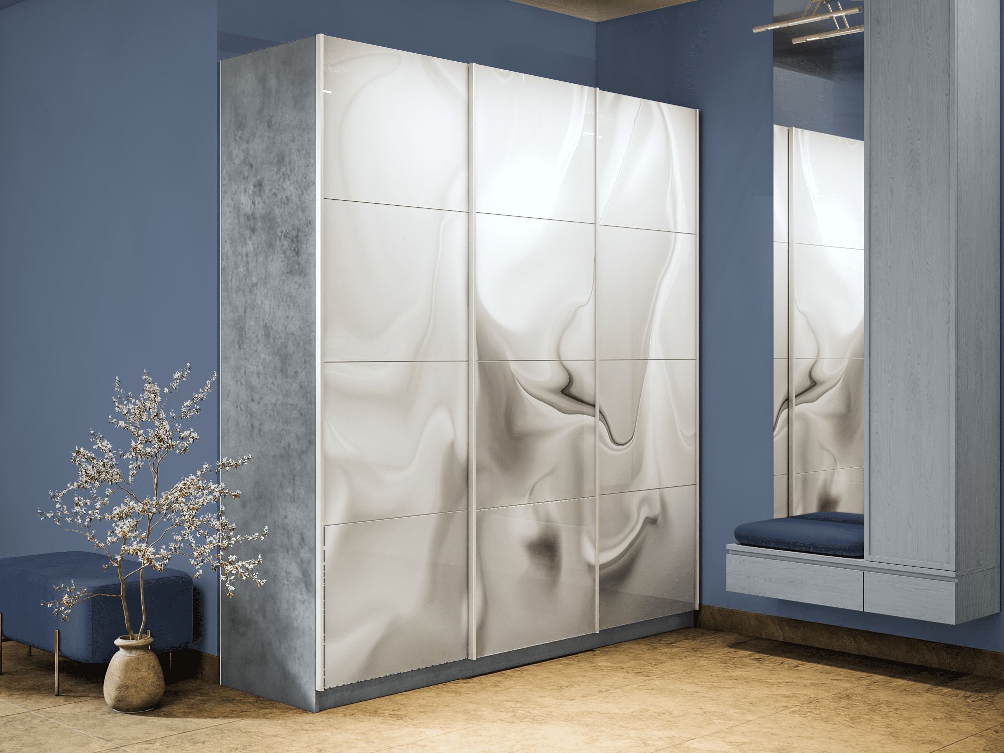 Шкаф-купе Прайм 3-х дверный Фотопечать Шелк Стекла/Доводчики 210х57х230 (Бетон)