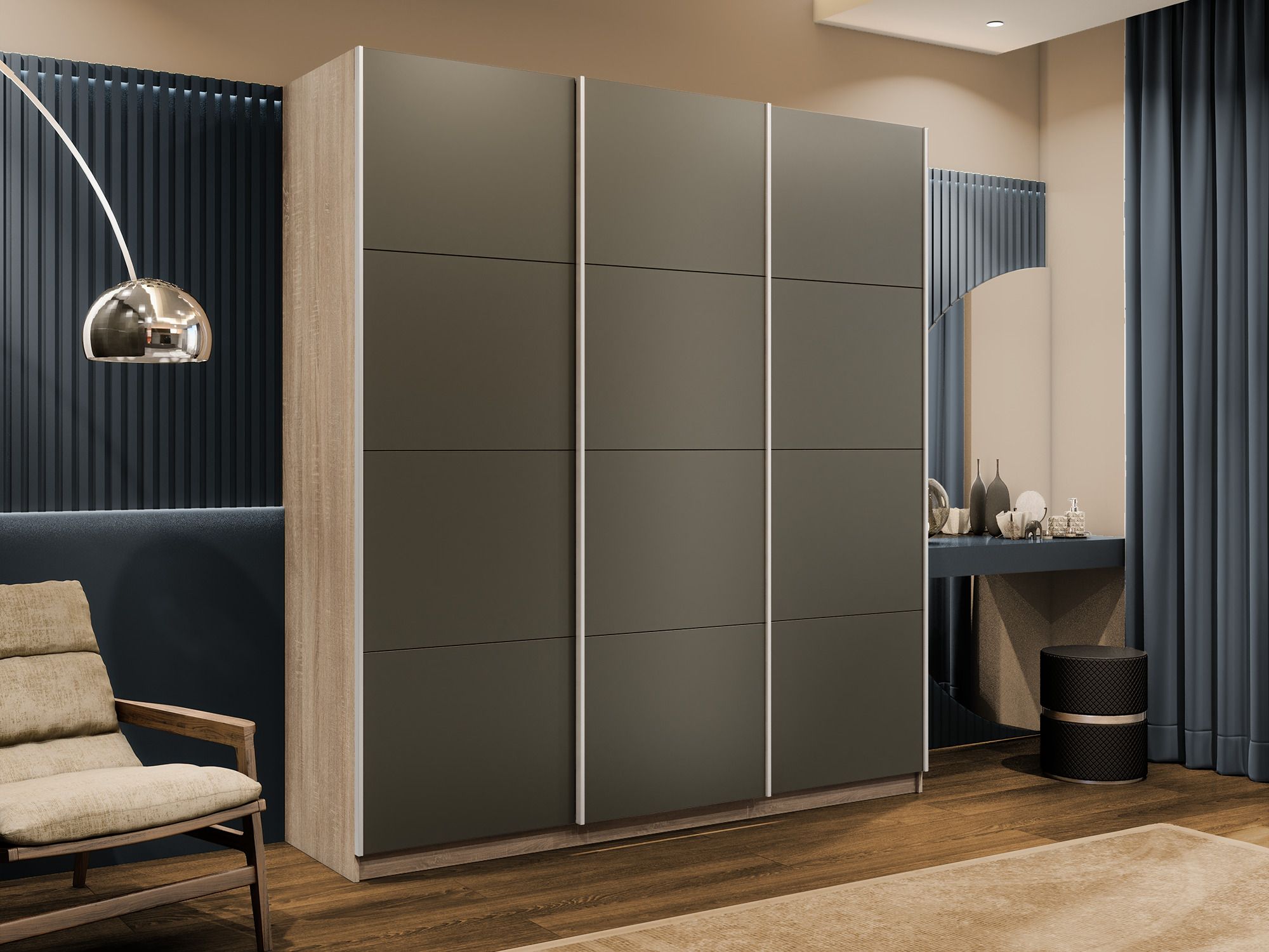 Шкаф-купе Прайм 3-х дверный Стекла хаки/Доводчики 210х57х230 (Дуб сонома)